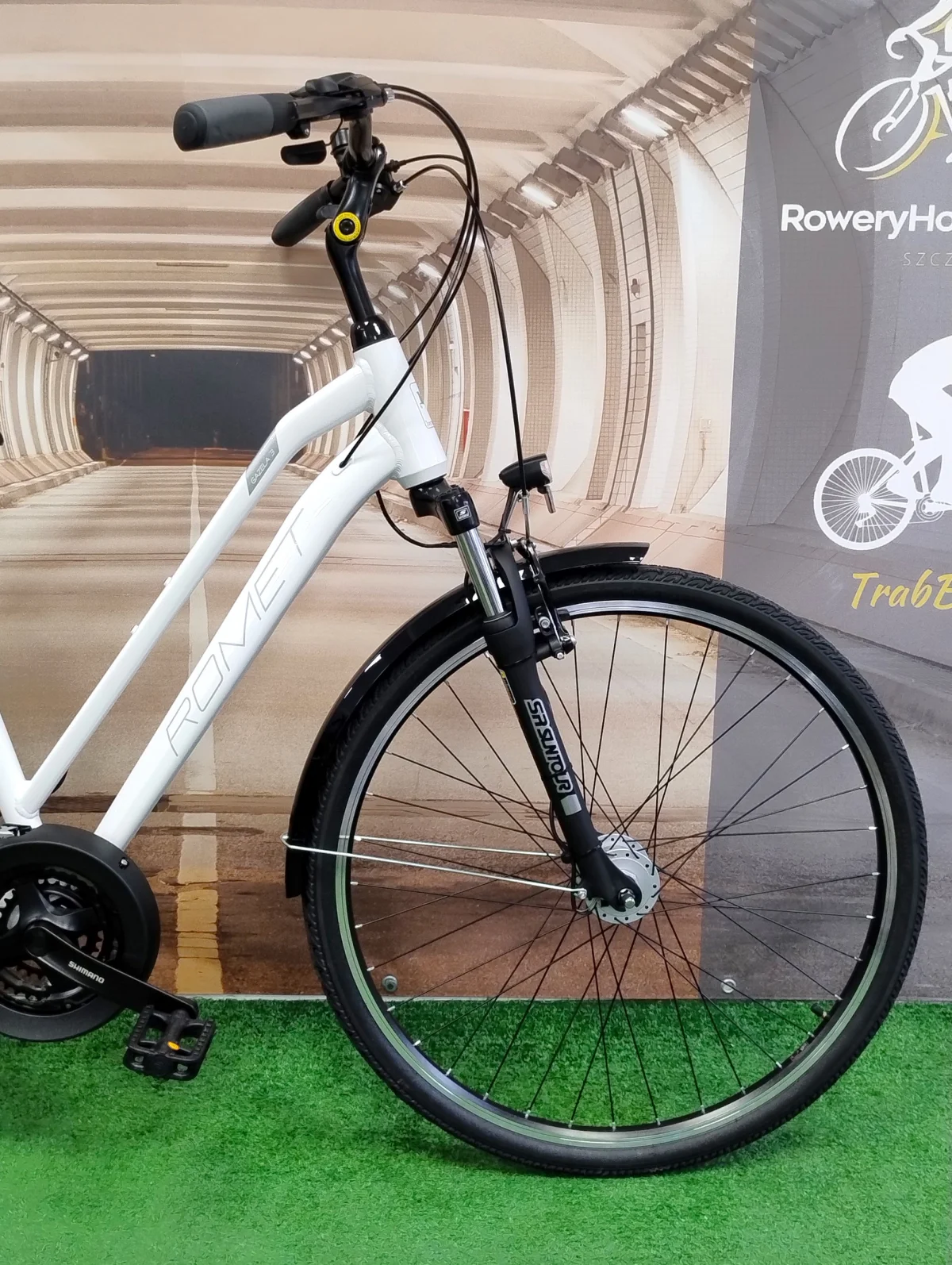 Zastosowane klamkomanetki Shimano ST-EF500 łączą w sobie hamulec i manetkę w jednym elemencie. Dzięki temu zmiana przełożeń jest szybka, wygodna i intuicyjna – nawet dla osób, które dopiero zaczynają swoją przygodę z rowerami trekkingowymi.