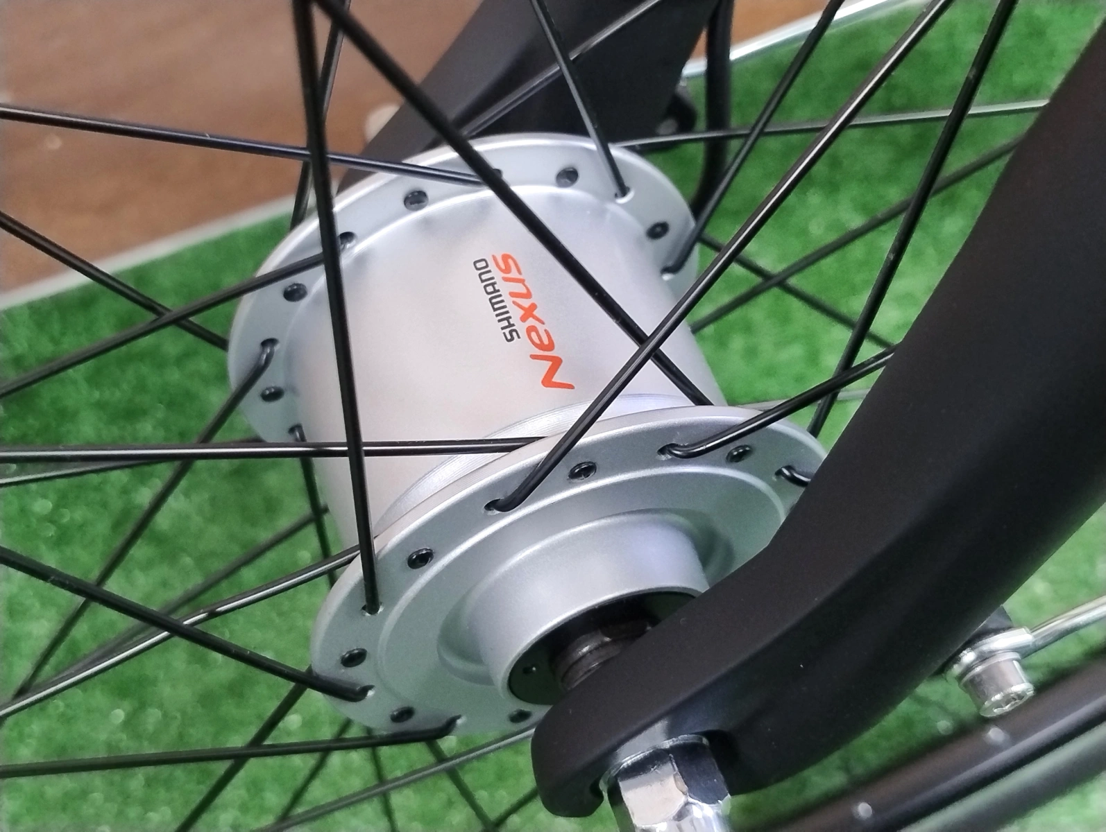 Rower wyposażony jest w kompletne oświetlenie przód i tył zasilane z prądnicy w piaście Shimano. Oznacza to, że światła działają automatycznie podczas jazdy – bez potrzeby ładowania akumulatorów czy wymiany baterii. To rozwiązanie jest w pełni bezobsługowe, odporne na warunki atmosferyczne i niezawodne w codziennym użytkowaniu. Prądnica w piaście nie generuje odczuwalnego oporu, a jasne lampy LED zapewniają dobrą widoczność i zwiększają bezpieczeństwo po zmroku oraz w gorszych warunkach pogodowych.
